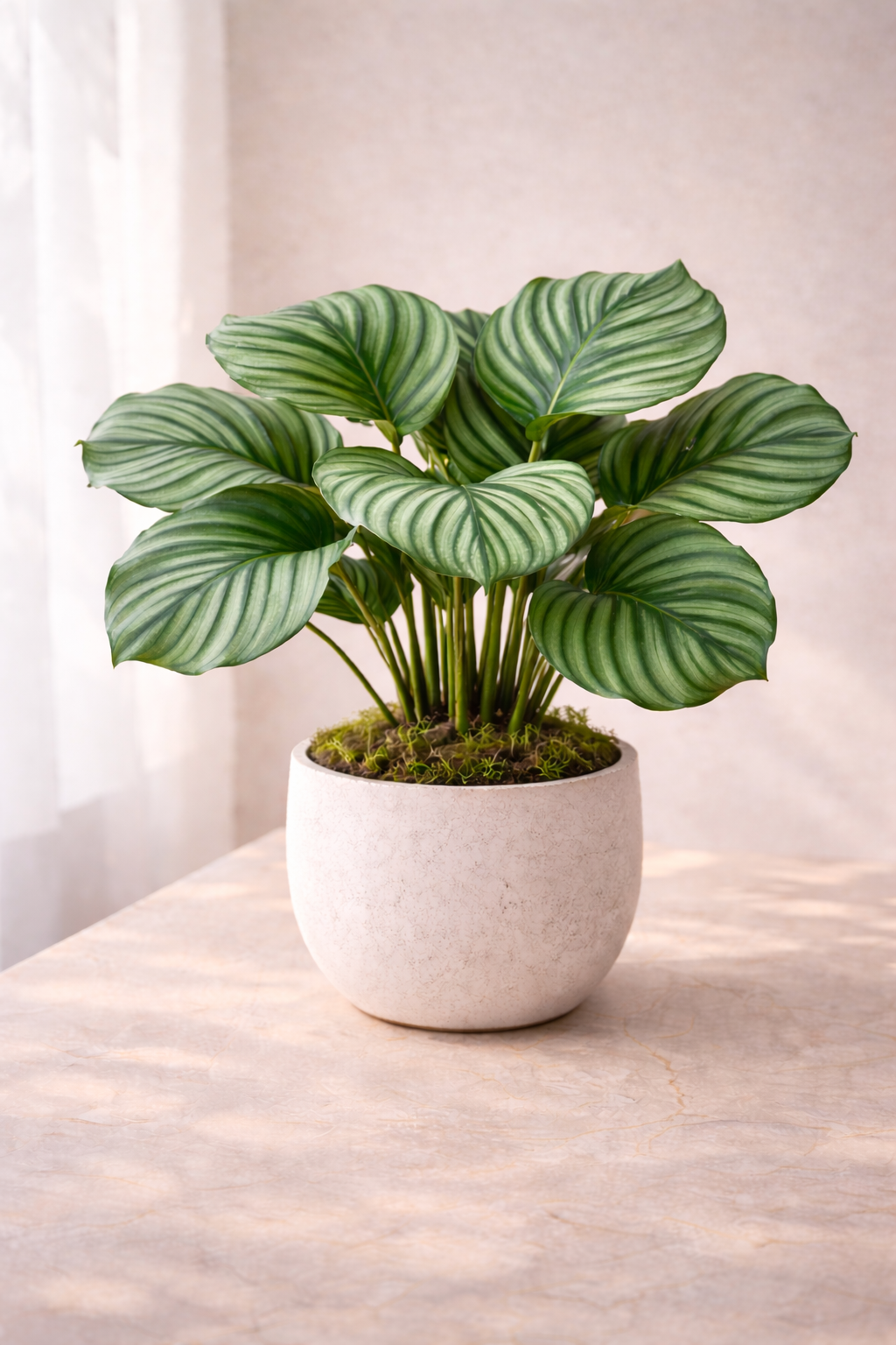 עלים רחבים עם טקסטורה עדינה שמוסיפה עומק ושקט עיצובי—בוטיק ירוק במיטב