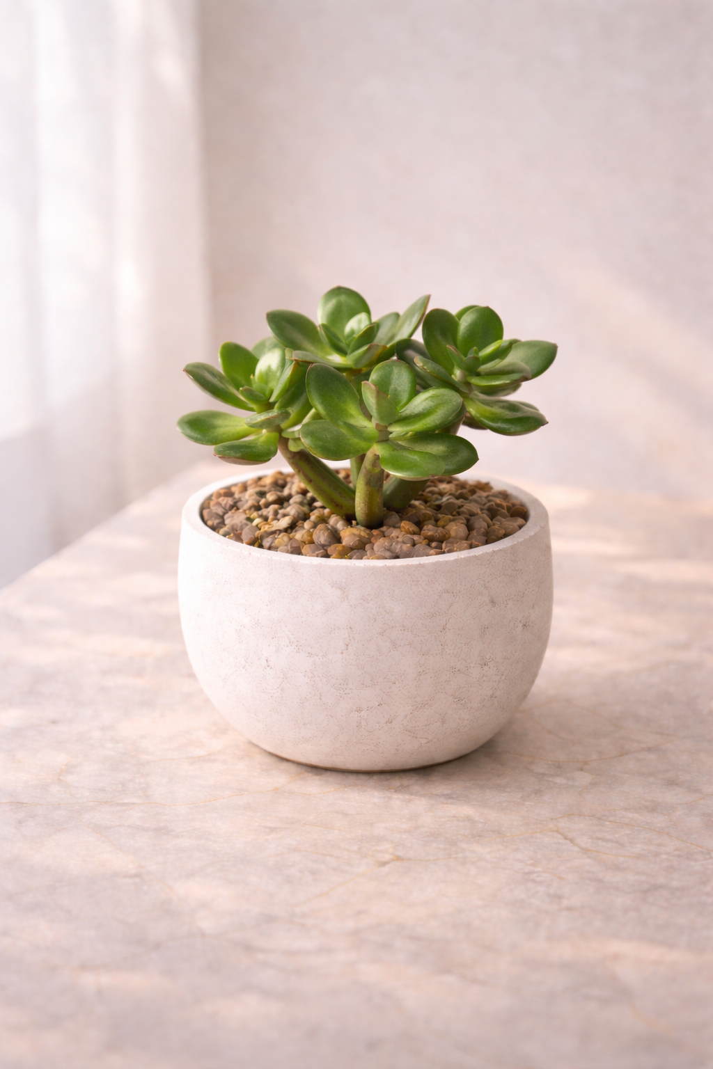 סוקולנט עם עלים בשרניים ומבריקים שמוסיף תחושת שפע ורוגע—מתאים לכל פינה בבית